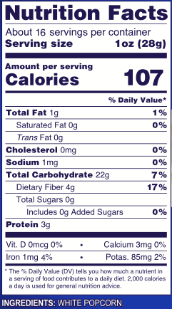 One pound bags of premium white popcorn kernels grown and packaged in Worthington, Iowa.
