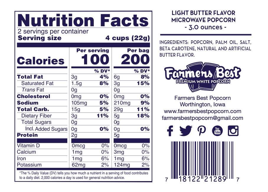 3.0 OZ. microwave ready bags of premium white popcorn. Quick, convenient, and oh so tasty!